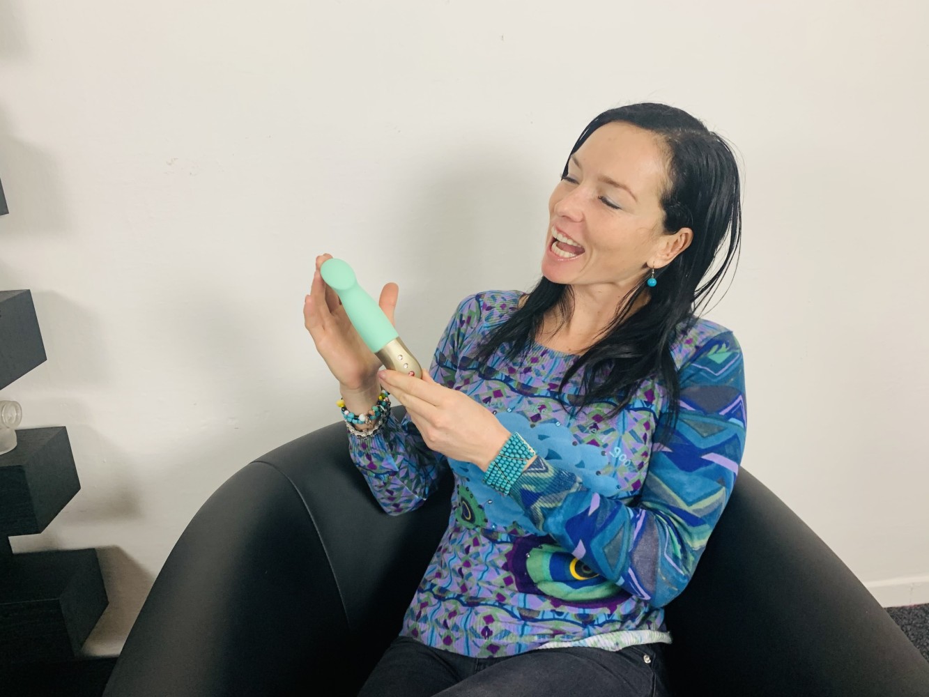 Ще ви хареса свежият дизайн на вибратора. С правата си форма и заострения си връх той прилича малко на пръст. Затова можете да го използвате не само за вагинално дразнене, но и за клиторна стимулация. Вибраторът приляга идеално в ръката. Затова е лесен за управление по време на мастурбация и съвместна игра с партньор.